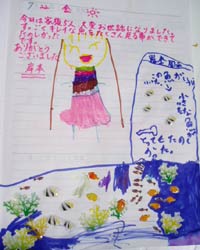岩本ファミリーのコメントは? 今日は家族5人,大変お世話になりました。すっごくキレイな魚がたくさん見る事ができて、たのしかったです。ありがとうございました。  子供達が書いてくれたイラスト付の海日記です。洞窟の表現やお魚さんがいっぱい居てとっても上手にかけてますね。ありがとうございます。又遊びに来てね!