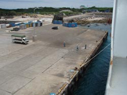 ↑バスの中みんなノリノリです☆ ↑与論の港に到着! ↑おお〜最高の天気です!