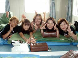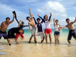 ↑みんなで集合写真。 ↑☆今回のBB美女☆ ↑無事沖縄に到着〜☆