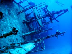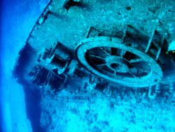 徐々に深くして行き30メートル付近から・・・でっかい船体が横倒れに倒れています。 でてくる百合ヶ浜を見に行く人にわかれて