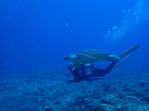 大きなアオウミガメが居ました!!