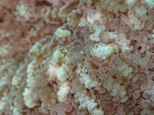 透明な体でサンゴに上手に隠れています