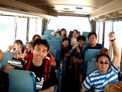 ↑バスの中みんなノリノリです☆ ↑与論の港に到着! ↑おお〜最高の天気です!