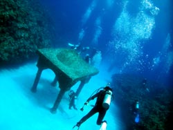 ↑到着して早速ダイビング♪ ↑なんと!一本目で野辺地さん100本 ↑念願だった水中宮殿!雰囲気最高