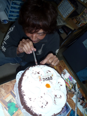 そして本番!!!サプライズのケーキに、ひろさんご満悦♪
