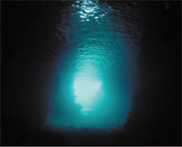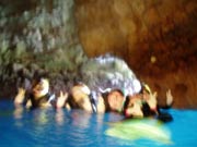 中は真っ暗!上からの光が少しと 海への入口からの光が・・・ドキドキです。でも目の前には神秘的な海が・・・まさにアドベンチャー インディージョーンズになった気分です。↓