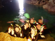 自由時間です。洞窟の中を他の人に邪魔にならないようにゆっくり探検です。スタッフが 水中ライトなど持っていくので 魚など紹介してくれますよ。
