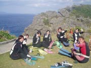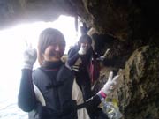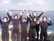 ドキドキプランの紹介です。金額は器材込みです。海況次第で プランが変わりますが スタッフに希望は伝えて置いて下さいね。所要時間は2時間前後でとにかく どんな風に進むのか流れを見てみよう!!、今回参加してくれたのは 兵庫県から来てくれた 佳子ちゃん@、佳子ちゃんAともちゃん・雅子ちゃん・としみちゃんの元気のいい可愛い女の子6人組です。午前中に体験ダイビングを終えた後 次は 洞窟シュノーケルに挑戦です。のぞいてみよう!↓