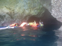 J 最後は 青の洞窟を体感できるメインのポイント2です。見て下さい 綺麗でしょう?ゆっくりと 深く光る青い海を眺めながら 泳いで帰っていきます 楽しかったね〜〜〜!大満足ファミリーでした。