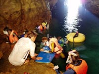 I そして 洞窟の奥に到着です。洞窟の中を他の人に邪魔にならないようにゆっくり探検です。スタッフが 水中ライトなど持っていくので 魚など紹介してくれます。意外と大きな洞窟なんですよ。