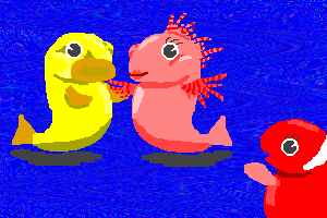 「喜んだよ、でもなあ、あいつは歌をやりたいって言っていた。そんな奴に俺は負けたんだぞ! 俺はあの舞台に掛けていたんだ!おまえに解るか?」 「解っているは、誰よりも頑張っていたのをいつもあなたを見ていたから・・・」 「・・・」 「ずっと好きだったのに。ハゼオさんがそんな魚だったなんて・・・それもハナコとこんなことして、・・・ もっと、もっとがんばってよ!諦めるのが早いわ!私も頑張る、だから・・・サヨナラ!!・・」 「クマノ美・・・」それから彼女とは会っていない、いや正確には俺はいつも彼女を見ていた。 そうダイビング雑誌の中で彼女は今をときめくトップアイドル、葉麻クマノ美(芸名)として ・ ・・・・現在・・・・・ ハゼオは思った諦めるな。もしかしてエビコさんとエビ太郎は兄弟かもしれないじゃないか(それは無い)、 それに俺は仕事に忙しくずっと会いに行かなかった、明日2人に会いに行こう。 次の日ハゼオは、エビコとエビ太郎に会いに行った。 「おはよう!エビ太郎は?」 「・・・・・・」 エビコは泣いていた。 「どうしたんだい。泣いてちゃわかんないだろ。」 「ずっと、タイ吉に狙われていたの。だから幼なじみのエビ太郎君が私を守ってくれていたんだけど・・・ 6時間前にタイ吉が来て・・・エビ太郎君をエビ太郎君を・・・・」 「エビ太郎〜〜〜!!!」 ハゼオは泣いた!そして決めた!俺がエビコさんを守る事を 「エビコさん明日から俺がエビコさんを守るから」 「だめよ!ハゼオ君までタイ吉に・・」 「大丈夫!必ず守るから」 「ダメ!困るは」 断られてしまったハゼオは諦めずに次の日も又次の日もエビコの所に行った。 でも決して家の中には入ろうとしなかった。エビ太郎の事があったからと、自分へのケジメだと決めて! エビコを守ると決めたハゼオは、テントを張ってタイ吉が来るのを待った! そして終にタイ吉が現れた、ゴーっという音がした、大きな目!大きな体!大きな口を開けて、テントが飛んだ、 ハゼオは吸いこまれそうになった!その時 ハゼオは叫んだ 「エビコ、家の中へー!」