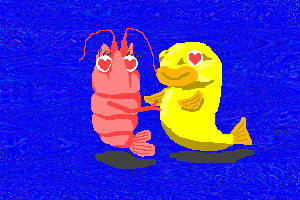 「エビコさん!こんにちは」 エビコはびっくりして、あわてて、家の中に入ってしまいました。 ショックのあまりハゼオは12時間もご飯を食べることが出来ませんでした。 次の日、気になったハゼオはエビコの家の前を通りました。 いつものように働いているエビコを見て安心しましたが、こちらの方を見ることも無く、エビコは働いていました。 ハゼオは嫌われたのです。 それでも毎日エビコの家の前を通っていました。エビコもハゼオを1度も見ることが無く働いていました。 ある時エビコが働いていると、大きな体をしたタイのタイ吉がこっそりと近づいている姿が見えたのです。 タイ吉はエビが大好物でエビコを狙っていたのです。ハゼオは大きな声で 「エビコさんあぶないー!」 叫びました。エビコは驚いて家の中に、タイ吉は諦めてかえっていきました。 ハゼオは家の前までいって言いました。 「エビコさん、もしかしたら君は目が見えないのでは?」 「そう、私はあまり目が良くないのです。」 ハゼオはエビコが俺のことを無視していたのではなく、気づかなかったのだと確信しました。 そこであらためて、ハゼオはエビコに言った。 「僕と付き合ってください」 「・・・・・」エビコは何答えない 「どうして? 僕はいつも君を見ていた。僕がハゼだから?だからなの。それとも他 に好きな魚がいるの?」 「他に好きな魚なんていないわ。あなたがハゼだからでもない(少しある) あなたはいつも私を見ていてくれる・・・ でも私はあなたを見ることが出来ないの・・・・」 ハゼオは泣いた! ハゼオは、エビコの事を思うと涙が止まらない!海の水が涙でしょっぱく感じた。 ハゼオは考えた!(海にはこうやって淋しい思いをしている魚が多いから、海がしょっぱいんだ)と恋に泣いたり、 人生に泣いたり、ゴミが多くて悲しくなったり、ハゼオはこれから、タバコのポイ捨ては、やめようと思った。 そしたら、少しは海も甘くなるかな!? 次の日ハゼオは、エビコに会いに行った。振られても負けないという気持ちで、そしてエビコがおどろかないよう に、小さな声で 「おはよう!今日の調子はどう?」 「今日はとてもいい日よ!なぜって!ハゼオ君が会いに来てくれたから!」 「あ・ありがとう」 「ハゼオ君は今日は何をしているの?」 「今日は・・・(が〜ん お・俺はぷー太郎だ!エビコさんは、こんなに家を造る為に一生懸命働いているのに)・・・ 今日は、仕事・・・休みなんだ!ハハハハハ・・・」 ハゼオは、心の中で泣いた! ハゼオは仕事をしないといけないと思った。そうだ!空き缶がいっぱい落ちているから、これを拾ってリサイクル に出そうっとその日からハゼオは、がむしゃらに働いた! 次の日も次の日も・・ある日、友達のミジンベニハゼのベニオが 「その空き缶を1つくれないか?」 「何に使うんだい!」 「ちょうど、いいおおきさで、穴があいているから、 それを家にしようと思うんだ!」 「なるほどな〜だったら、あげるよ!」 「ありがとう」