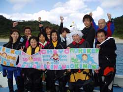 千葉県 流山市からきてくれたFS16会の皆様9名があたたかい沖縄で体験ダイビングに挑戦!!です。 今日は本当にいい天気でTシャツOKのポカポカ陽気です。しかも海もおだやかで最高のコンディションです!最初は緊張の表情もちらほら。。でもそこはオトコ衆、全員バッチリ潜って来ました。魚に餌をあげたり、やわらかなサンゴをみたり、観音様にお願い事をしたり、二モにあったり楽しかったですね。体験ダイビングでも、ライセンスコースででも、また遊びに来てくださいねぇ〜。 | |||||