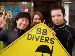 本日のファンダイブのメンバーは、ふくもとさんと、のりこの姉、けいこちゃんです。姉は妹のりこの器材を使っていたので、のりちゃんがいるみたいでした。おねぇちゃまはバブルボックスの皿不足というマニアックな、 裏事情をご存知で、お皿のプレゼントをもってきてくれました。助かりますぅう〜。与那国でのさとうきびライフがんばってね! | |||||