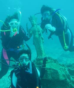 ハイサイ!ハイサイ!健太郎です!!今日は天気サイコー!晴れ!晴れ!晴れ!!日焼けするぐらいのいい天気!!こんな日がアドバンスコース最終日の横山さん!!ラッキーだネェ!!まずは1本目サーチ&リカバリー!ウエイト君をサーチしてしっかりリフトバックを使ってリカバリー!!これでは物足りず観音様までリカバリーしてきちゃった(^0^)プカプカ浮いて揺られてる観音様は可愛かったよーー!!またヤローー!!2本目はディープダイブ!深い水深もたまには堪能しないとね!!しっかり安全停止もしてのんびり潜ってきました! | |||||