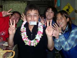 12月31日からショップツアースタート。名古屋から遊びに来てくれた ダイビングプロショップ エビスさんです。初日は北風が強く糸満でダイビングでした。2日目のお正月も波が高く、予定のジンベイは変更となり、崎本部まで大移動。本日は深津さんが300本、千代鳥さんが500本のお祝いでした。おめでとうございま〜す。記念日とあって、沖縄にしては珍しく、あられが降ってました。最終日はようやく天気も回復して、ケラマへ出航。本日も森さんが、ファンダイブ50本記念でした。メモリアルダンスも水中でバッチリでした。海もキレイで、魚もたくさん、トウマではデバスズメに癒されました。次回は必ずジンベイもぐりましょう。 | ||||