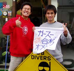 オープンウォーター講習最終日!昨日に引き続きガースーです!今日は残念ながらドンヨリとした天候の中でしたが、海は相変わらず美しい!!2人でハッスル×2してきました!!毎日、どんどん成長するガースーは今日もいい感じに中性浮力のコツを覚えていってました!!やはりなかなかやるなぁおぬし....。最終日なのでしっかり遊びをメインに潜ってニモにも挨拶してきました!最後は観音様に合格の報告をして合格セレモニー!!今日からあなたは見事ダイバーの仲間入りです!おめでとうございます!!来年は就職かぁ!仕事も忙しくなると思うけどまた遊びに来てね!!研究会も頑張って!42型液晶テレビ待ってます!! | |||||