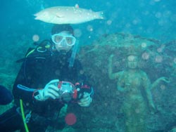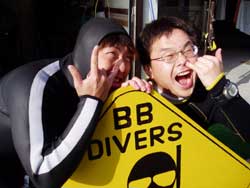 福本さんとのマンツーまんファンダイブです。今日はイナンと砂辺に潜りました。でーーかいイザリウオにもあいました。福本さん、水中写真のウデをずいぶんあげましたね。あの福本さん水中写真集すごですね。ウミウシ、ジョーフィッシュにマンタ。また次来た時にも見せて下さいね。 | |||||