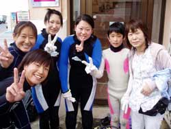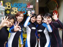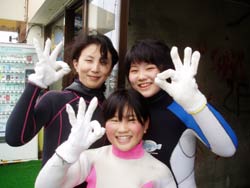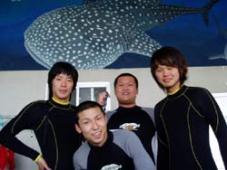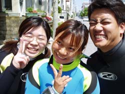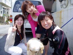今日の体験ダイビングは九州から遊びに来てくれた4名!!キョウコちゃん、マリちゃん、ヒトミちゃん、そして、モナリザです。みんな海の経験があって余裕で水中の中へ。水中に入ってもライセンスもってるの??っていうくらいガンガン泳いでいました!!ホントに上手だったよ!そして餌付けしたりサンゴを触ったりニモを見たりみんな楽しんだみたいです。久しぶりに九州弁で話せて俺も楽しかったよー!!もうたくさん潜ってるんだから今度はライセンスに挑戦してね!!また遊びに来てね!!待ってるよー!! |