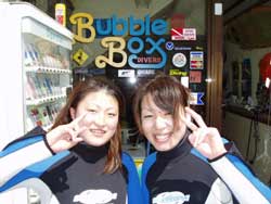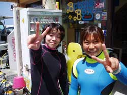 はいさい!健太郎でっす!!今日また新たにダイバーが誕生しましたよ!!イエイ!!今日が最終日のみゆきとアサコ!!色々苦労があったけど見事にダイバーになることができました!おめでとう!!今日はマスク脱着がんばったねぇ!!俺も心の声でずっと声援を送ってました(^0^)/なかなか中性浮力は難しいけどこれからどんどん上手くなるよ!!保証します!!さぁ!これで満足しないで、今ダイバーとしての一歩を踏み出したばかりだからね!また一緒に潜ろうぜ!!待ってるよー!!ししゃも.....(笑) |