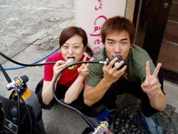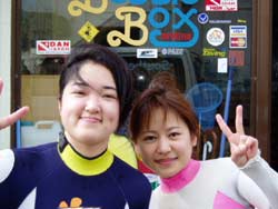 ・・・・・・・・ワンタンです。はい!!という事で本日沖縄大快晴!!暑いぜ!琉球!!今日のお客さんは横浜から来ていただいた。ユカリさんとチアキさんの初沖縄and初スヌーケルin真栄田岬でキャピキャピ始まりました!いや〜二人とも最初からテンションが最高潮で水着着るだけで疲れていましたね(笑)。そのままでいざ!洞窟へ!!恐いくらいの蒼い光が包んでくれました!最高にキレイだったね!カワイイ魚も見れたしね!!次はダイビングに挑戦してみてね!! |