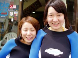 はいさい!健太郎っす!今日からピンクパンツを復帰させてしまいました!!イエイ!!そんな記念すべき日に遊びに来てくれたのは!しのさん(左)!&はるみさん(右)!です!!今日は天気もいいし、かなり暑いし!沖縄らしい素晴らしい天候でサイコーのダイビング日和だぁー!!2人はラッキーだねぇ(^0^)/いやぁ〜〜それにしても綺麗な海だった!!かわいいニモの親子にも会えたし大量の魚達にも囲まれたねぇ!!チョー気持ちいいーーー!!!そしてラストにはヒョイっと穴もくぐって帰ってきました!!2人はとっても素直でばっちし潜れてるから是非ライセンスをGETしよーぜ!!また一緒に潜りましょう!!待ってるヨォーーー! |