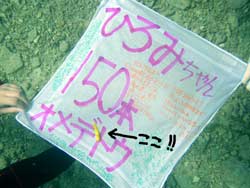 元、行徳に住んでたりょうこが、今日一緒に潜ったのは、新浦安から来てくれた荻窪親子チーム!ゆうちゃんときみえママです。2人ともとっても上手!ゆうちゃん、ひろあきお兄ちゃんと一緒に上手に泳げたね!ニモやギルもいたね!かわいかったね〜。君江ままは初めからどんと来い!って感じでスイスイ泳いでた、さすがです!いつか、親子でライセンスゲットなんていうのもステキですね!2人と潜れて私も楽しかったです。またきっと遊びに来てくださいね。アイスクリームの差し入れありがとう!すっごく嬉しかったでーす! みんなで美味しくいただきました。 |