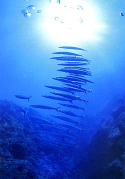 今日の午後からはマキちゃん&トオルさんが体験ダイビングに来てくれました。初めてってことで緊張してる。。と一瞬いったけど、海にあるきはじめた時はわくわくしてきたぁ〜って。。緊張はほんの数秒だけだたね。(笑)うんうん2人ともりょうこの予感的中!かなり上手い!!はじめからほったらかし状態でもニコニコ泳いでついてきます。ナカナカできるな!おぬし。。と心のなかでつぶやくりょうこでした。そして『ニモ』をみたり、魚に餌付けをしたり、空飛ぶようにおよいだり。。初めてのダイビングはどうだた?ライセンスとればいいのに。。 2本目は、僕、クワガタひろあきと、洞窟ダイビングです。。 |
