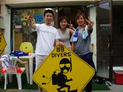 今日の真栄田岬は台風以来の激混みでしたね〜!!BBファンダイバーはクマさん・いとうさん・ちづる・キレンジャイ・まさみ・りょう君・さおりちゃん・マサコ・ながP・水ちゃん・福ちゃんです!!ビーチファンダイビングでこんなに大勢なのは久しぶりですね!!水中でも賑やかでしたよ〜!!クマさんのビデオ撮影大会が調子悪くて中止・・・でも悪い出だしを吹き飛ばしてくれたのは、ちづるのHAPPY★BIRTHDAYお祝いでした!!!おめでとう!!!来年の誕生日も是非、BBで迎えてくださいね!!その後水中でウイダーインゼ〇ーで、乾杯!!!みなさん、味がわかりました???私はグレープフルーツ味をアップル味に間違えてしまいました・・・楽しかったですね!!明日はりょうくん!!楽しみにして待っててねぇ〜!!! |