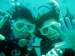 はい!!ニックです!!元気です!!今日は、OW最終日の北辻さんとお友達のあっちゃんと一緒にダイブしてきました!!2人とも去年の今頃にもB.Bに遊びにきてくれました!!今日は、講習最終日ということで泳ぎ方やB.C操作の練習です!!北辻さんは、初日から比べると見違えるぐらい上達してびっくりしました!!人間やっぱりライバルって大事ですね(笑)あっちゃんも、1年ぶりのダイビングで最初は緊張してたけど、最後のほうはだんだんかんを取り戻していましたね!!2本目では、洞窟に行き洞窟の蒼い光を見に行きました!!そして、無事今日のダイブが終わり見事OWダイバー合格です!!!!おめでとぉぉーございます!!これからは、2人でいっぱいダイビングしてください!!また、秋ぐらいに会えるのを楽しみにしています♪♪また、次こそはジンベイに会いに行きましょうネ!!まってますよぉぉー☆☆☆ |