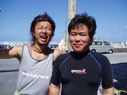 ハイサイ!今日も元気だ麦茶が美味しい!!ってな感じで今日もりおな丸にのりこんでダイビングしてきました!!ゲストはクマちゃん!&浅川さん!!ガッツリ行ってきました!まずは残波でダイナミックな地形を見ながらピグミーちゃん観察したりしました!なにやら子供が産まれたのか??物凄く小さな個体も発見!!総勢7名家族でしたよぉー!可愛い(^0^)/その後にいくつかのトンネルをくぐったりしてTHE地形!!って感じでしたね!!!2本目にはまったりイナンビシでクマノミ達や数百匹のタイワンカマスに囲まれたりしちゃいました!ガーデンイールもヤシャハゼも可愛かったですね(^0^)/最後はビーチから真栄田に行きました!ちょーーロング&ディープダイブ!ん〜〜なかなかやらないディープでハゼ達を観察してそのままツバメの根から洞窟まで行ってきました!エラ呼吸サマサマですなぁ....。そんなこんなであっという間の3DIVEでした!浅川さんは今日が最終日ですね!また早く沖縄に帰ってきてくださいね!!クマちゃん明日も楽しみましょう!! 今日はいつもおなじみ「うろこ」のカツミさんを写真に入れてみました!”!俺とオセロ状態ですね.....。 |