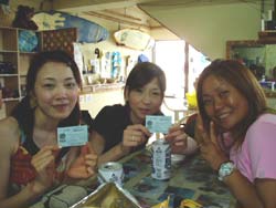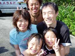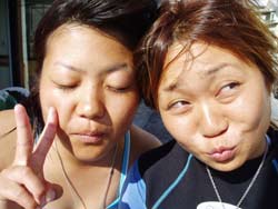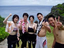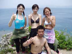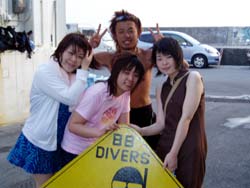 じゃんじゃじゃぁーん!本日ダイバーになったステキな女性が4人いまーす!ヒューヒュー!!ニコニコ笑顔のカズちゃんと、相変わらすかわいいミエさんです。ミエさんは、私の父の弟のお嫁さんです。いわゆる親戚なのです。そして、ありさちゃん&いっちゃんの4人が本 オープンウォーターライセンス合格!まず本日1本目に、練習をぜーんぶおわらせて、2本目は合格祝いオ遊びダイビング!!洞窟へGO!すんごいカズのリュウキュウハタンポの群れになによりあの洞窟のブルーの美しさ!!ビューティホー!!いっちゃん、ありさちゃん、せっかく沖縄にいるんだものまた遊びにきてね!楽しみにしてるよ。みえさん、カズちゃん今年も遊びにきてくれて嬉しかったです。あっという間の3日間だったけど、すっかりダイバーの泳ぎっぷり!ハードな階段やマスク脱着などなど、よくがんばりました。りょうこもとっても楽しい3日間でした。是非来年も遊びにきてね。そして、カズちゃんダーリンによろぴく〜。 |