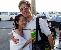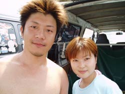 太陽がサンサン!!真っ黒くろすけ出ておいで〜!!さて!今日は日本が世界に誇る海!!慶良間での体験ダイビング!!それではそんなラッキーなお二人をご紹介!北海道、東京出身で現在名古屋在住のヤマギシ夫妻です!一回体験ダイビングしてるだけあって、とても上手でした!海の中で癒される真っ白い砂地をみて、かわいくてきれいな魚をみたり、足ヒレをはずして遊んだりして帰ってまいりました!次はライセンスですよ〜 |