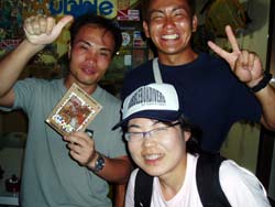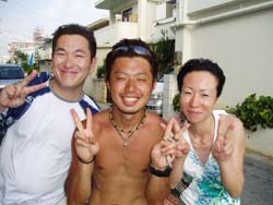 はいさい!!あかねで−す!!あつっーい毎日ですが・・沖縄の海は最高ですよ!!今日は〜OW最終日の3人!!健太郎さんの友達の玉木くんとよしみちゃんとあけみちゃんです☆今日は、スクール最終日ということで、まず1本目にコンパスや中性浮力の練習をしました!!3人とも、なかなか上手に中性浮力とれてましたよ♪♪そして、ラストDIVE☆では蒼の洞窟に行きました!!キレイな蒼で、しかも洞窟の前にはリュウキュウハタンポの幼魚の群れ!!群れ!!すんごい魚の大群で感動です☆そして、帰って学科を終え・・・なっななんとOWダイバーの誕生です!!おめでとーございます!!これで、みなさんはもぉ立派なダイバーです!!これからも、いろんな海でたっくさんダイビングしまくちゃってください♪♪そして、沖縄の海にもまた遊びに来てください!!また〜一緒に潜りましょうねぇぇー☆☆☆ |