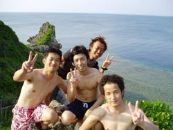 んーなにやら絶景ですな!そうここは最近お世話になっている。真栄田岬!最高の眺めなんでみんないい笑顔だ!そんな三人とアクティブに洞窟までスノーケリングしにいってきました!みんな水慣れしていて、なんでダイビングしないんだろう?と思うくらい(笑)。素潜りに挑戦してみてビックリみんな上手い事上手い事!参りました!そんなこったで洞窟まで到達!暗くてひんやりしていましたが鍾乳洞みたいですごかったですね!帰りには蒼い光をみて癒されながら帰ってきました!次は絶対ダイビングに挑戦してくださいね!! |