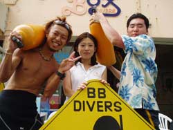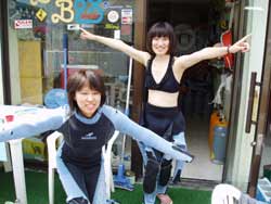 じゃんかじゃんかじゃんかじゃんかじゃんじゃじゃじゃじゃじゃじゃ〜ん。という事で今日は不思議なノリのいい二人組みの体験ダイビングです。3年前くらいにBBで体験ダイビングをしたハルカちゃんと初ダイビングに挑戦のクリボーです。昨日はライブで燃えたらしくお店でも感動を伝えてくれました。わくわくどきどきの二人は海の中へ入るときれいなサンゴや魚に「きゃー」とか「わー」とか言って熱狂してました。観音様にはなにをお願いしたのかな??ニモの産卵シーン感動したよね!!なかなか見れるもんじゃないからラッキーだったよね!次はライセンスとかもいいんじゃない??また遊びに来てね!!! |