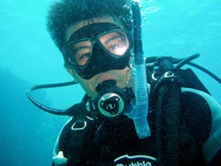 見てくださいこの晴天!!久しぶりにこんなにカラッと晴れてしまいました。沖縄万歳!!という事で、僕は3日間オープンウオーターのスクールを担当してたんですが。ゲストは初BB&初ダイビングのチコさんです!!まず初日は早速海へ!!砂辺が使えなかったので、真栄田岬に行ってきました。「すごく緊張してるんですよ〜」って言ってたわりには練習をして海に入ると「さっき言ってたのはうそ」??っていうくらいのはしゃぎっぷり。念願のタコを見つけるとその穴に手をつっこんで触ろうとするし、ハリセンボンをいじめようとするし。でもとても上手でスキルは問題なくあっさりやってしまうし、泳ぎ方も自分で泳ぐコツをつかんだらしくきれいに中層を自由自在に泳いでいました。そして帰って学科をやったんですが、眠そうな目をこすりながら、頑張って受けてくれました。2日目も順調にスキルを終えて、問題の学科試験。本人は不安気な顔をしてたけど、高得点で合格!!とりあえずダイバーに一歩近づいたね!!そして今日最終日!!またまた真栄田岬に来てしまいました。スキルはほとんど終了しているのでゆっくり泳いで水中生物をみたりぼーっと水面をながめて癒されたり。そして二本目には洞窟ダイビング!!洞窟の入り口には、今の時期しかいないリュウキュウハタンポの幼魚がまたしても、巨大な魚を作っているのか、カーテンみたいにユラユラと水中を漂っていました。そしてミナミハコフグの幼魚にも遭遇してしまって、もりだくさんのダイビングでした。そして見事ダイバー誕生!!!おめでと〜!!!パフパフ〜!!!3日間ホントにおつかれさまでした。とても立派なダイバーになりました!!これからも是非ダイビング続けてくださいね!!!今度は慶良間に行きましょう!!待ってまーす!! |