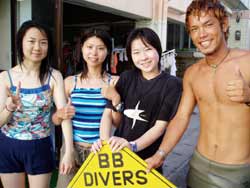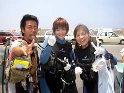もうすぐ7月も終わりですね〜。早い!!夏が終らないうちに遊びまくりましょう!!という事で今回二日間のアドバンス講習を受けに来てくれた、女の子三人組は、さやかちゃん、みほこちゃん、あおいちゃんです!!みんな水産系の学校に行ってて、魚やウミウシやサンゴにやたら詳しい!!しらない魚やウミウシの生態などを教えてもらって俺もたじたじです。笑 |