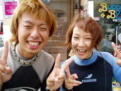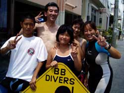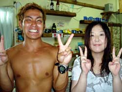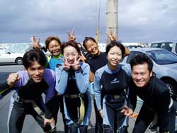 はい!今日2組目のラッキーダイバー!!高橋兄弟!!奈津子ちゃん&瑠璃子ちゃん!なんと7人兄弟!ほかの5人も今度遊びにきてくれるかな??ってなわけで2人とも説明もしっかり真面目に??聞いて練習でもバッチリ!こりゃーいけるぞってことで!!海のなかもガンガン泳いできました!!途中しっかり観音様に挨拶をして魚のテロ攻撃にあったりもしたね(^0^)/健太郎マジックはおもしろかったかな??微妙か.....。太陽の光もすっげー綺麗だったでしょ!?プチ洞窟もくぐれたし海ってサイコーでしょー!!次はライセンスGETする??2人なら絶対いけるから挑戦してみてね!!また沖縄で会えるのを楽しみにしてまーす!!お姉ちゃん達にヨロシク!! |