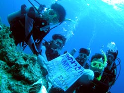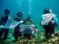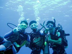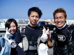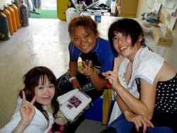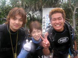 こんちには☆今日は朝から2組4名様の体験ダイバーさんが来てくれました!!麻美が一緒に潜ったのはタイキさん&ミカさんでっす♪2人ともすごい上手くって麻美は楽チンでしたょ(笑)空飛ぶようにふわふわ泳いだり、ニモをみたり、サカナ捕獲に挑戦したり楽しかったですね!また潜りに来てくださぁい(^O^*) はい!のりこです!!私が一緒に潜ったのは新婚旅行で遊びにきてくれたアツアツカップル☆かなり仲がよくて羨ましかったです(*^0^*)二人もかなり上手でしたよ〜!!たくさんのサカナと戯れながら餌付けをしたり、観音様にもお願い事をしました!!陽一さんはビデオカメラにも挑戦!!水中カメラもバシバシとっていきました!☆ふたつとも上手くとれているといいですね!つぎに来た時は蒼の洞窟でも見に行きましょうねぇー♪また遊びにきて下さい〜(^▽^)/ |