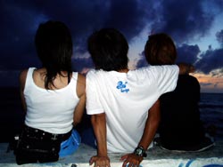 急に髪の毛が伸びてロン毛になりました。笑 なんと、只今台風9号が接近中の沖縄地方です。今回オープンウオーターのスクールを3日間担当してました!!遊びにきてくれたのは、マッチ―、さとちゃん、ヒロッピーです!!みんなそれぞれ一人の参加だったんだけど、昔からの友達みたいに仲がよかったよね!!という事で一日目は砂辺でダイビング!!初めての人もいたけど、みんなとても上手!!スキルもつまずく事なくとても順調に進んでいきました。学科も眠い目をこすりながら聞いてくれました。 |