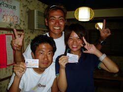 はいさい!!あかねで−す!!今日は〜昨日から引き続き今日がOW最終日の玉城くんです☆今日は、スクール最終日ということで、まず1本目にオクトパス浮上や中性浮力の練習をしました!!なかなか上手に中性浮力とれてました♪♪そして、ラストDIVE☆ではニモを見たり、お花畑の上を飛んで遊んだり楽しく潜りましたね!!そして・・・OWダイバーの誕生です!!おめでとーございます!!これで、玉城くんはもぉ立派なダイバーです!!これからも、いろんな海でたっくさんダイビングしまくちゃってください♪♪また〜沖縄戻ってきた時は一緒に潜りましょうねぇぇー☆☆☆まずは明日のケラマ楽しんでね♪おめでとぉぉー!! |