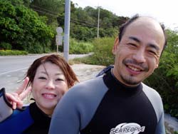 海!!!今日は横浜から来てくれた黒田夫妻と一緒にファンダイビング!今日は到着日、明日は慶良間ということで1本にしました。その1本はSUNABE!!ん〜やっぱり最高でした!水温もまだまだ暖かいし、観音様もいるし(笑)。ゆっくーーり泳ぎながらリクエストがあったのでキレイな砂地のほうに行ってきました。小さなエビや、迫力のある右ドロップを進みながら戻ってきました。明日は慶良間ですよー!ゆっくり休んで明日に備えて下さいね! |