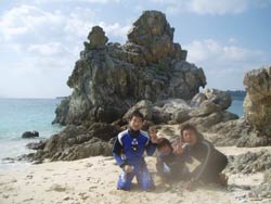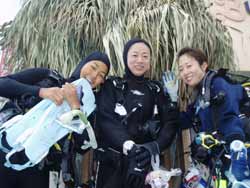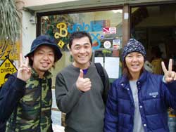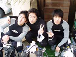 こんちにはぁ☆今日、10時〜体験ダイビングをしに来てくれたのは寒い岩手県から修学旅行の自由時間で遊びに来てくれた昌仁くん・琢磨くん・俊くんです!体験ダイビング初めてで、かなり緊張気味だった琢磨くんをはじめ3人ともとっても上手!水中ではまみやあかねちゃんを追い越すくらいガンガン泳ぎ回って楽しんでいました★次、遊びにくるときは卒業旅行かな?(^^)楽しみに待ってるよぉ♪ |