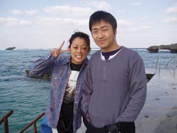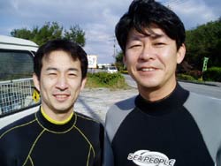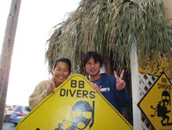 まいど!ひろあきです。今日はまた新しいダイバーが誕生しました!!!ダイバーになったのは愛知県から遊びに来てくれた大山さんと上田さんです!!二人とも今年の夏にBBで体験ダイビングをした事があってとてもリラックスした様子でした。一日目と2日目は北風が強くて波がでてきたので奥武島に行ってまいりました。いや〜それにしても寒い・・・。風が冷たくて海の中も寒すぎて体が麻痺しそうなくらいでした(笑)でも二人はそんななかスキルをガンガン終えていきました。う〜んさすがです!!そして二日間ともホテルで学科講習。二人とも真剣に聞いてくれて学科は高得点で合格です!!!!おめでとうございます!!!!いや〜終った時の二人のほっとした表情は素晴らしかったです(笑) |