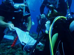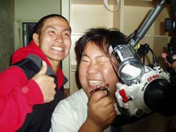 砂辺!!。はいワンタンでーーす。今回はOW講習を担当しました。スクール生はスギメさんのお友達黒田さん!二日間コースだったのでバシバシといきました(笑)。でもやっぱりそこは男の人根性と気合でついてきてくれました!しかもセンスがすごくいい!!一日目の講習でほとんどスキルを終わらしちゃいました!!二日目はほとんどフリー潜行の練習や、ホバーリングの練習に費やし、魚の写真を撮ったり、ナマコを・・・うふふ。シャコガイでも・・・・うふふ。次回は初のファンダイビング!楽しみに待ってますネーー☆☆。 |