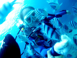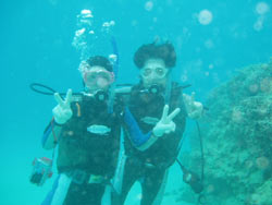 happy happy クリスマぁス!!!今日、午後から体験ダイビングをしに来てくれたのは小山さんご夫妻。ケンジさん&ユリコさんです☆ダイビングがまったく初めてのお2人。緊張しつつもしっかり説明を聞いてくれ、元気に練習をしました!そして水面での練習・・・やっぱり2人ともかなりの緊張でしたね。なかなか楽に呼吸ができませんでしたが、練習の甲斐あって水中世界に行くことが出来ました♪ケンジさんは慣れると動き回っていましたが、ユリコさんは定位置でじぃ〜としていました(^^)ぜひぜひ次はスイスイ泳ぎ回りにリベンジしにきてくださいね★ |