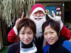ハイサイ!ハイサイ!クリスマス・イブ!2発目の体験ダイビングです!俺がサンタ狩りに会いそうだな...。ってな訳でサンタの格好で潜ってきました!そんな格好のインストラクターに付き合ってくれた翼ちゃんと梅ちゃんです!!今日は2人の記念すべき初ダイブ!海の寒さも心配されましたが、天気も最高によくなんとか乗り切りました!2人とも水中で自由に泳いで見たり、サンゴを眺めたり、中層を浮遊したりしてガッツリ遊んできました!ラストにはイブ!なのでここでも愛のこもったプレゼントを(^0^)/喜んでもらえましたでしょうか??「安くてごめん...(笑)」大事にしまっておいてね!!次回はライセンスGETしよー!そしてバイクのデザイン何か新しいのできたら見せてね!!また一緒に潜りましょう!! |