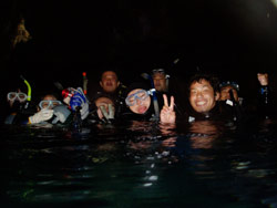 今日は〜沖縄から遥か北のほう北海道から遊びにきてくれた☆木下さん・本田くん・門田さん・クミビキさん☆と一緒に洞窟スノーケルに行って来ました!洞窟の外は波であらら〜だったので今日も火曜サスペンス並みの崖を降りて洞窟まで行きました!!がんばって行ったかいもあり、洞窟は透明度ばつぐんでした☆☆☆洞窟の〜奥にはキラキラ光る魚の群れ×2☆★リュウキュウハタンポのかなりの大群ですんごーいきれかった!!洞窟も〜蒼い光がきれかったぁぁー!!次は〜ぜひ一緒にダイビングしましょう!!ダイビングで行く洞窟も、また少し違ってたのしいですよ♪♪ぜひ〜おまちしてまぁぁーす★☆★ |