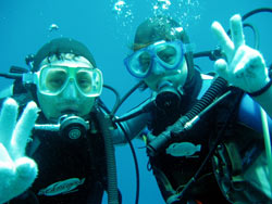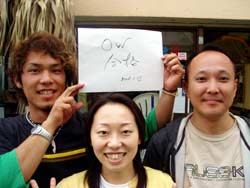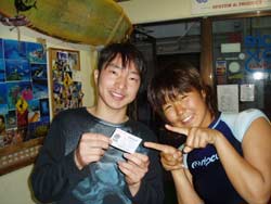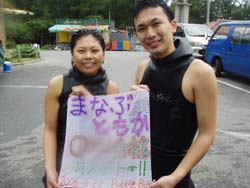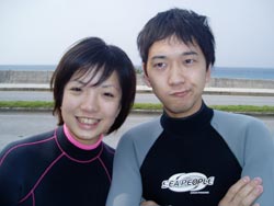 飛び入り体験スペシャルコースに参加してくれた、たっちゃんとかっちゃんです。たっちゃんはアドバンスを持っているので 思い出しながらバッチリでした。上手かったよ。かっちゃんも初めてのダイビングでドキドキしていたけど 全然上手かったですよ。海の中って最高でしょ?かなり泳ぎまくってしまいましたが 海の中を飛ぶような感じで スイスイ泳げてよかったね。次回はライセンスを取って たっちゃんとファンダイブでケラマに行こうぜ〜〜!夜の飲み会も楽しかったね。また沖縄の海で待ってるよ〜〜! |